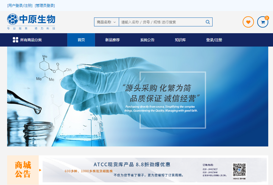中原公司一直以“推動(dòng)生命科學(xué)事業(yè),服務(wù)于全人類(lèi)健康”為使命!面對日新月異的全球生物產(chǎn)業(yè)熱點(diǎn)需求,中原公司不斷提高服務(wù)水平,充分發(fā)揮自身優(yōu)勢,服務(wù)理念從“傳統模式”向“互聯(lián)網(wǎng)+模式”升級。中原公司網(wǎng)上商城于2019年5月1日正式上線(xiàn)。19-05-07