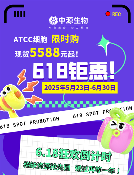 618鉅惠!ATCC細胞限時(shí)購,現貨5588元起!5.23至6.30,新建ATCC賬號用戶(hù),首單額外立減100元!更多細胞系、腫瘤細胞、菌株、原代細胞...25-05-23