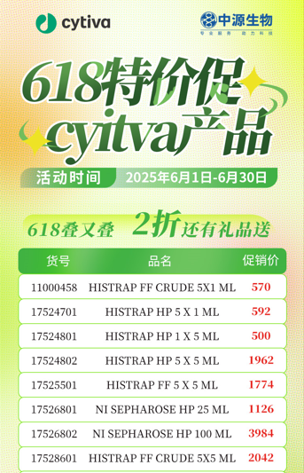 第三彈 | 618大促,Cytiva產(chǎn)品疊又疊,2折還有禮品送,雙重疊增buff!活動(dòng)時(shí)間:即日起至6.30,快來(lái)看看都有哪些~25-06-05