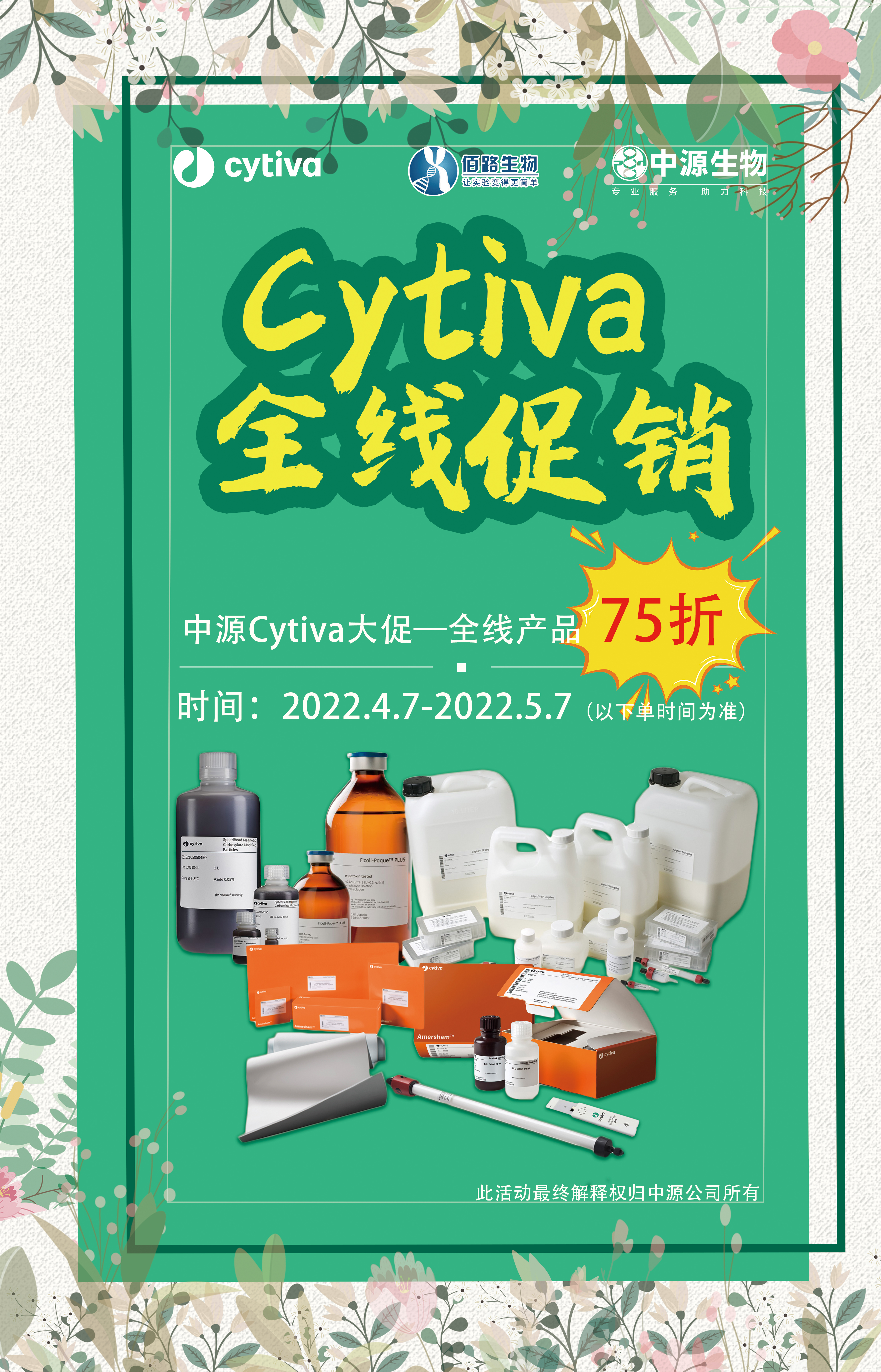 Cytiva全線(xiàn)產(chǎn)品7.5折 活動(dòng)時(shí)間:2022年4月7日起至5月7日 速速致電中源公司銷(xiāo)售訂購22-04-13