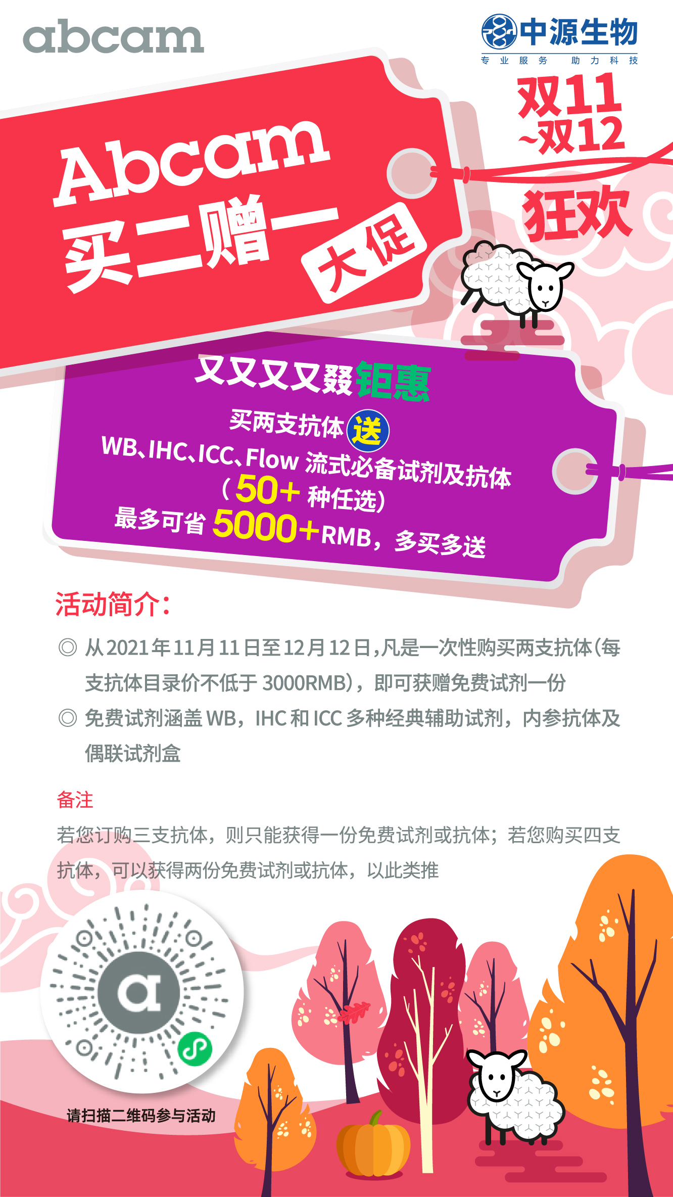 11.11火力全開(kāi),abcam促銷(xiāo)又雙叒叕來(lái)了~ 抗體買(mǎi)二贈一,多買(mǎi)多送?。?!21-11-17