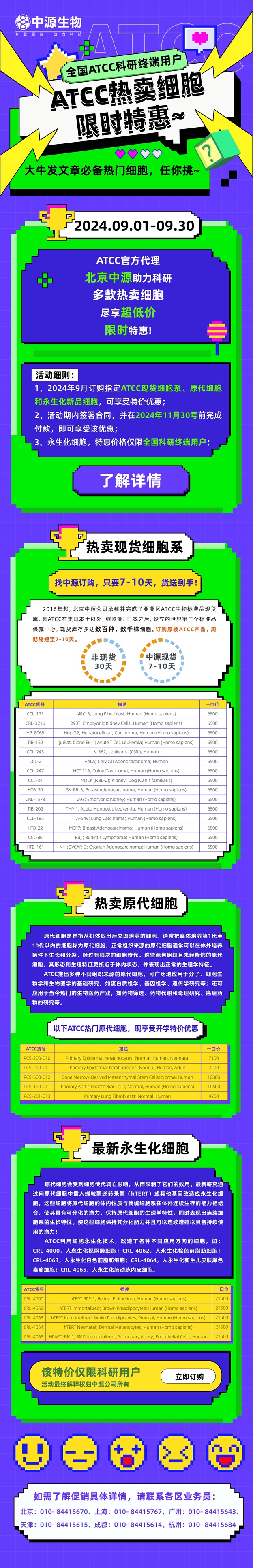 ATCC熱賣(mài)細胞 限時(shí)特惠 | 開(kāi)學(xué)促銷(xiāo) 專(zhuān)享一口價(jià)