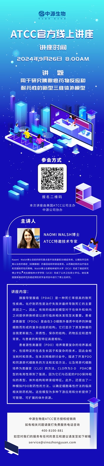 ATCC網(wǎng)絡(luò )研討會(huì )邀請函 | 用于研究胰腺癌藥物反應和耐藥性的新型三維體外模型