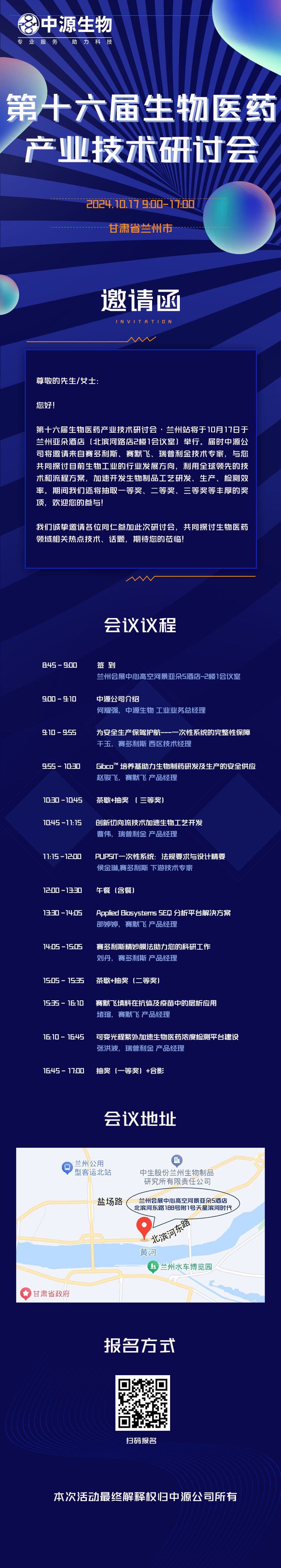 邀請函 | 第十六屆生物醫藥產(chǎn)業(yè)技術(shù)研討會(huì ) · 蘭州站誠邀您參與!