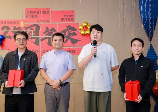在全場(chǎng)熱烈的掌聲中,紀念品發(fā)放有序進(jìn)行。隨后,李童總經(jīng)理、王鳳源經(jīng)理、劉玲玲經(jīng)理作為代表分享感言,言語(yǔ)間滿(mǎn)是對公司的歸屬感。他們紛紛表示在中源的這些年,收獲了許多成長(cháng),未來(lái)還將繼續與公司同頻共振,貢獻更多力量。最后,全體干部手持紀念品,在鏡頭前留下合影 —— 燈光定格的瞬間,不僅是一張照片,更是一份凝心聚力、共話(huà)未來(lái)的珍貴記憶。?
