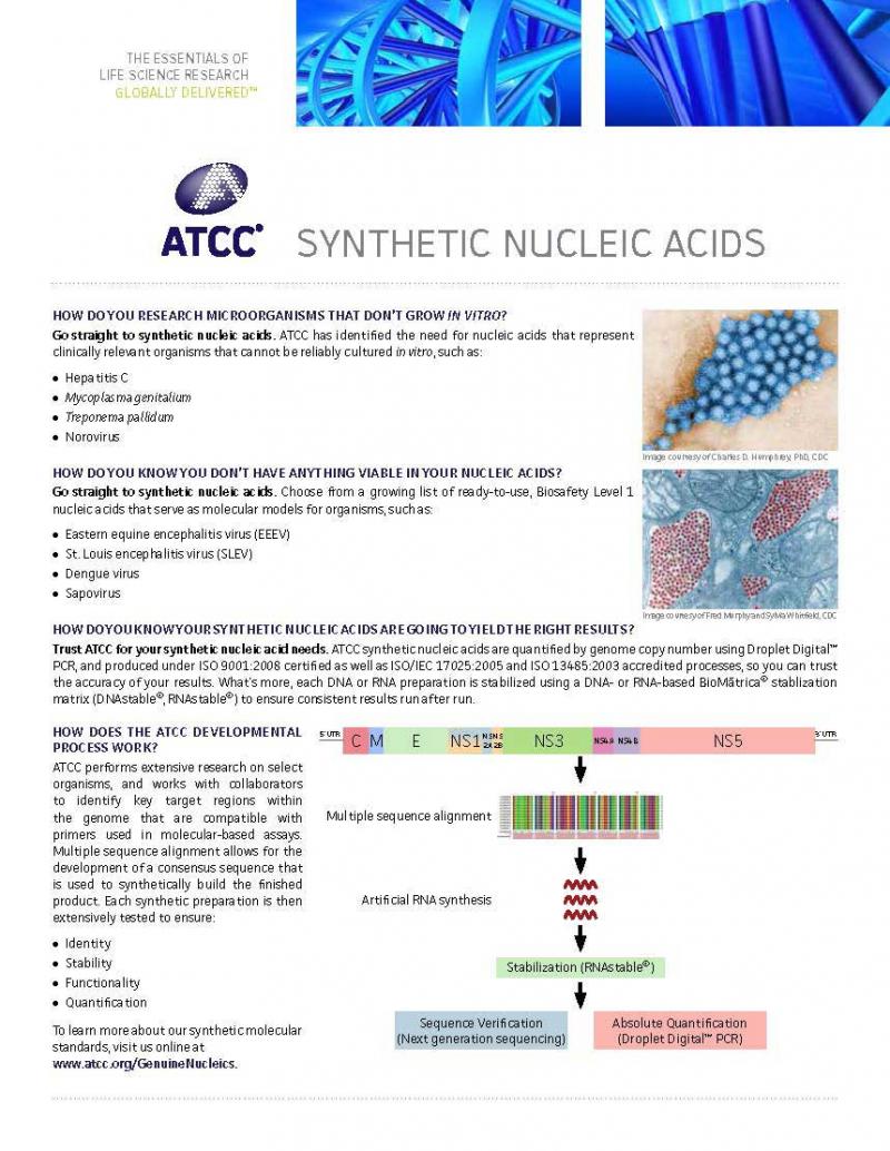 ATCC提供包括丙型肝炎、生殖支原體、梅毒螺旋體、諾瓦克病毒等臨床上常見(jiàn)微生物直接合成的基因組。這些基因組通過(guò)Droplet Digital™ PCR確定拷貝數。生產(chǎn)過(guò)程符合ISO 9001:2008 ISO/IEC 17025:2005和ISO 13485:2003認證?;蚪M中已加入DNA或RNA穩定劑 (DNAstable®或 RNAstable®)以確保后續實(shí)驗的一致性。