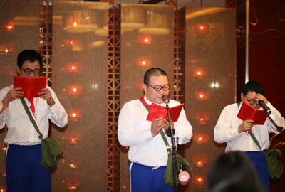 改革開(kāi)放創(chuàng )盛世,歡樂(lè )和諧滿(mǎn)中原。2009年1月17日晚,北京中原公司2009年春節聯(lián)歡晚會(huì )在北京順義金潮玉瑪國際酒店如期舉行??偨?jīng)理方之寧先生攜全體員工一同觀(guān)看了演出,并在晚會(huì )開(kāi)場(chǎng)前送給全體員工新年的祝福。