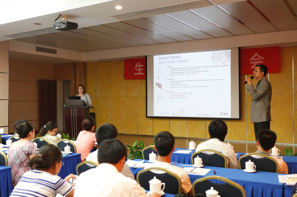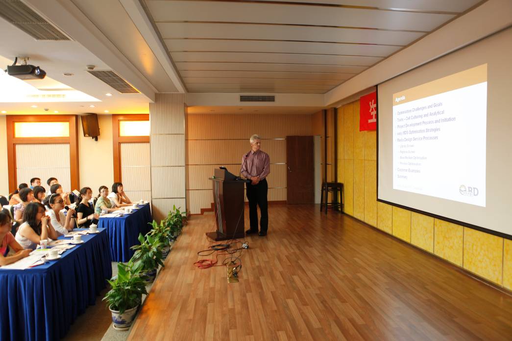 來(lái)自BD高級生物工藝部門(mén)的產(chǎn)品專(zhuān)家Geleick先生介紹了在生物制藥迅猛發(fā)展的今天生物培養工藝部門(mén)面臨的挑戰以及BD公司如何提供高效高產(chǎn)的培養基優(yōu)化平臺及相關(guān)服務(wù)。