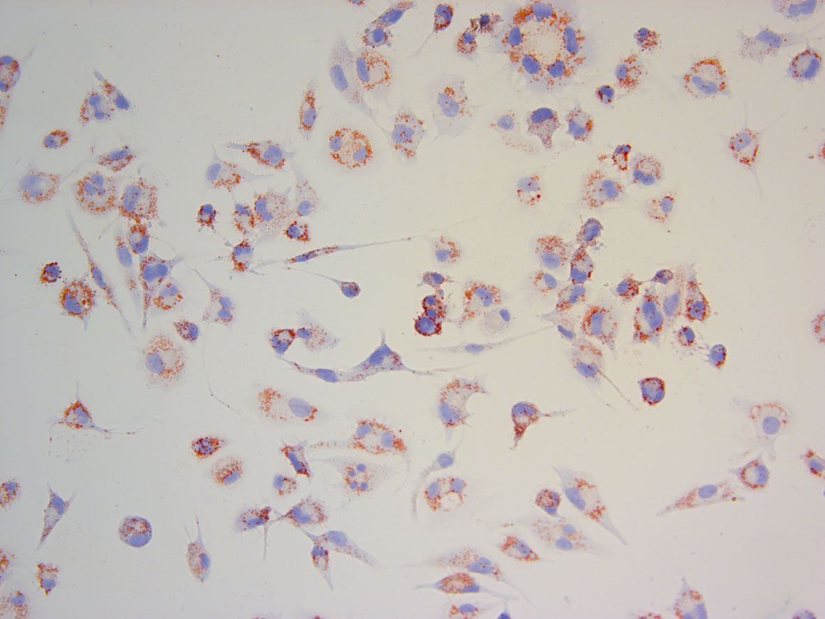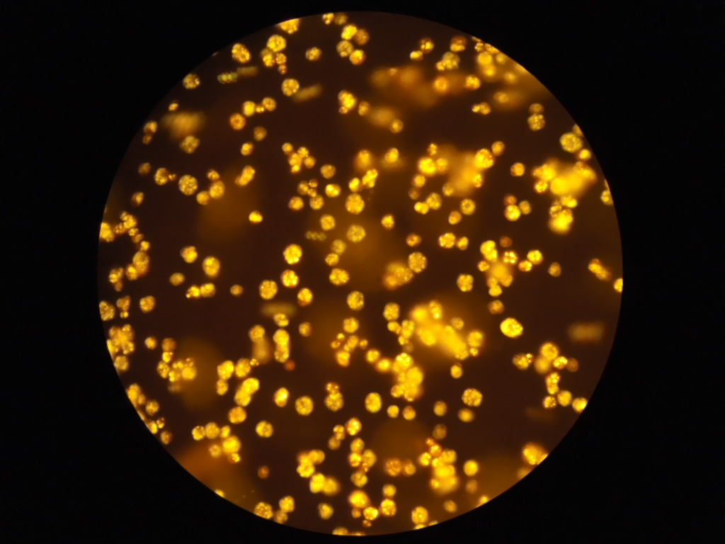 “熒光顯微鏡下觀(guān)察到的尼羅紅染色后的寇氏隱甲藻,像滿(mǎn)天繁星一樣耀眼!”