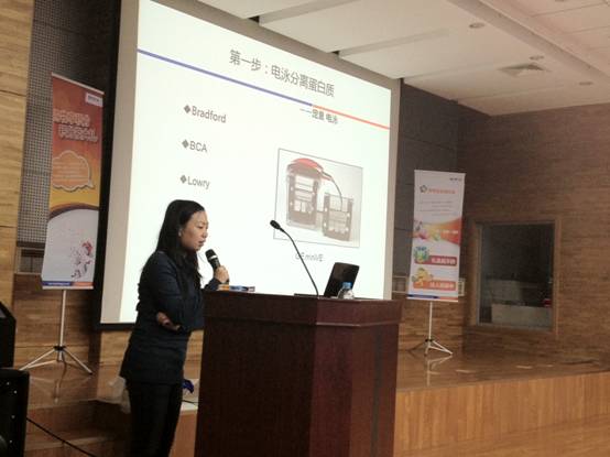 第一個(gè)講題是由中原公司市場(chǎng)部資深技術(shù)專(zhuān)家——張瀛丹給大家講解的Western blot實(shí)驗技術(shù),她深入淺出地介紹了Western blot實(shí)驗中常見(jiàn)的問(wèn)題及解決方法,得到了同學(xué)和老師們的一致肯定。之后,張瀛丹又介紹了FTA卡的使用方法。并且在講座后為每位同學(xué)免費分發(fā)了一些FTA卡試用裝。