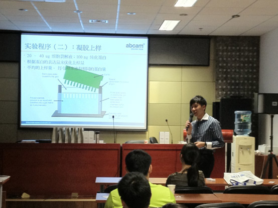 本次研究生交流論壇,我們特別邀請到了Abcam香港的技術(shù)專(zhuān)家——梁正晞博士。梁博士對wester blot技術(shù)非常熟悉精通,這次講座就和大家分享了western blot trouble shooting的技術(shù)經(jīng)驗。并且,梁博士還給大家介紹了abcam的新產(chǎn)品——Optiblot,蛋白電泳和蛋白印跡系列產(chǎn)品能夠幫助您節省時(shí)間,確保您不斷獲得出眾的實(shí)驗結果。Optiblot系列產(chǎn)品有電泳凝膠、電泳試劑盒、緩沖液、輔助試劑和凝膠染色。