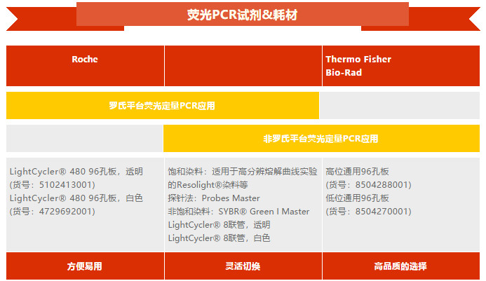 LightCycler® 480試劑,無(wú)論是基于熒光染料法、水解探針?lè )ǖ亩繖z測,還是基于高分辨熔解曲線(xiàn)的基因分型,都可在實(shí)時(shí)定量PCR中獲得高擴增效率和高質(zhì)量熒光信號,定量/定性結果精確度高。