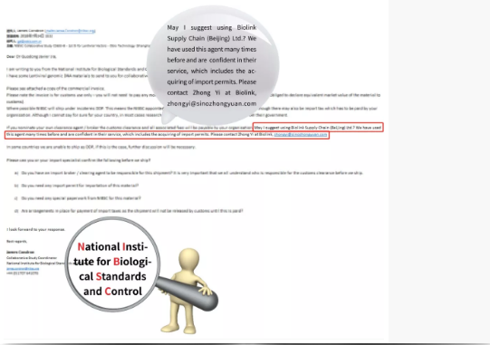 中原公司全資子公司,專(zhuān)業(yè)的外貿物流服務(wù)平臺---比歐聯(lián)科供應鏈管理(北京)有限公司,負責NIBSC 產(chǎn)品的下單,訂購,外貿物流服務(wù)。 NIBSC也多次向中國用戶(hù)推薦比歐聯(lián)科公司來(lái)做進(jìn)出口: