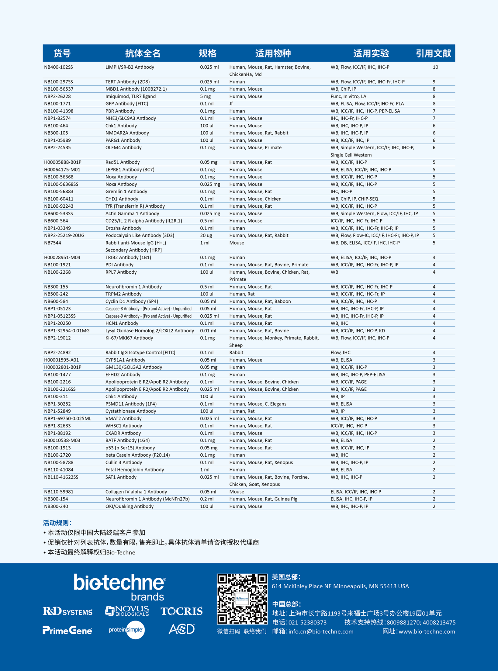 2)參與活動(dòng)的抗體有約400種,全部為現貨,每種抗體只有1支,3.9折秒殺,完整列表見(jiàn)下文。