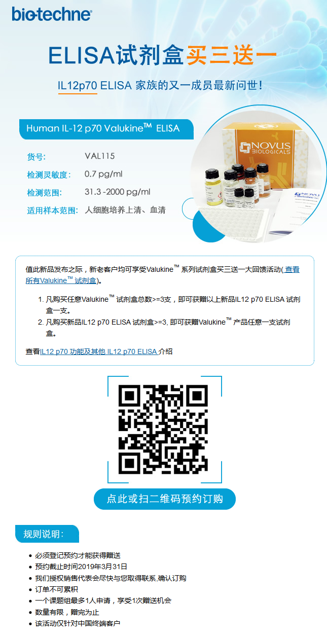 2)凡購買(mǎi)新品IL12 p70 ELISA 試劑盒>=3, 即可獲贈Valukine TM 產(chǎn)品任意一支試劑盒。