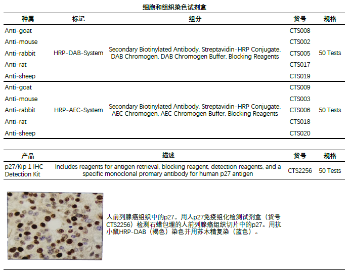 細胞和組織染色試劑盒用于各種組織學(xué)和細胞學(xué)樣品中抗原的定位。這些試劑盒是基于親和素與結合了組織里目標抗原的一抗之間形成的親和素-生物素復合物(ABC)的原理,設計成即用型的規格。包含了稀釋好的生物素標記的二抗和 HSS-HRP,無(wú)須額外的孵育步驟,減少了手工操作的時(shí)間,降低了人為估算錯誤的風(fēng)險,非常方便。