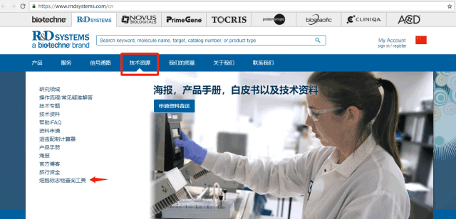 (1)登錄 R&D Systems官方網(wǎng)站www.rndsystems.com/cn