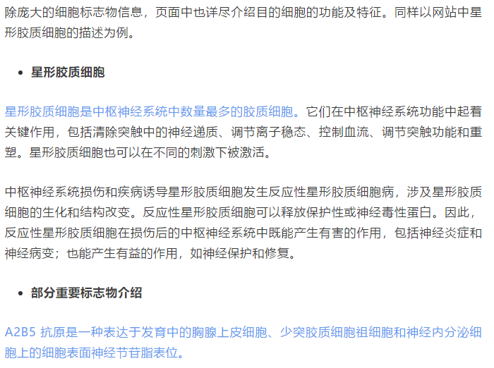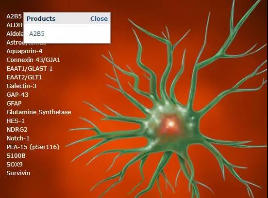 2. 點(diǎn)擊進(jìn)入星形膠質(zhì)細胞,顯示標志物