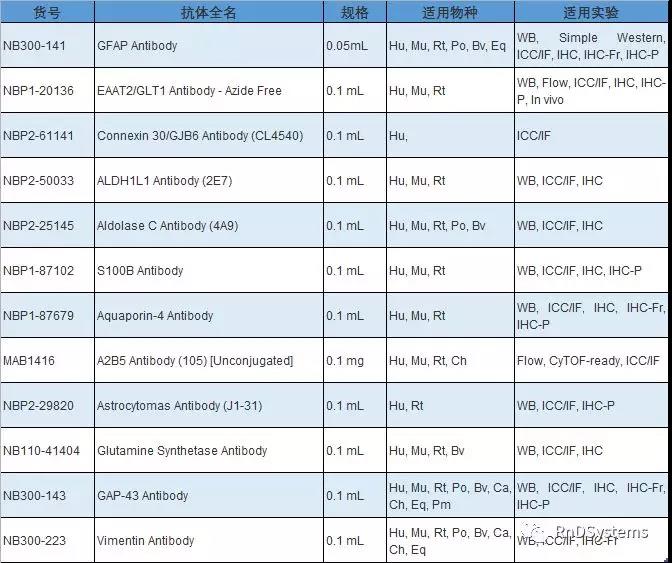 以下為我們推薦的研究星形膠質(zhì)細胞抗體列表: