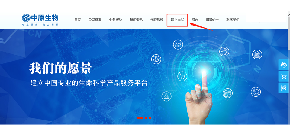 中原公司一直以“推動(dòng)生命科學(xué)事業(yè),服務(wù)于全人類(lèi)健康”為使命!為客戶(hù)打造優(yōu)質(zhì)高效,安全可靠的生命科學(xué)產(chǎn)品公共服務(wù)平臺。面對日新月異的全球生物產(chǎn)業(yè)熱點(diǎn)需求,中原公司不斷提高服務(wù)水平,充分發(fā)揮自身優(yōu)勢,服務(wù)理念從“傳統模式”向“互聯(lián)網(wǎng)+模式”升級。中原公司網(wǎng)上商城于2019年5月1日正式上線(xiàn),商城地址: http://shop.sinozhongyuan.com/