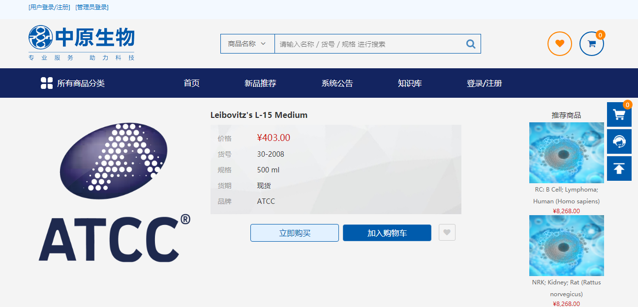訂購ATCC產(chǎn)品,登陸中原公司網(wǎng)上商城,實(shí)時(shí)掌握現貨庫存情況,為您提供愉悅的網(wǎng)上購物體驗。