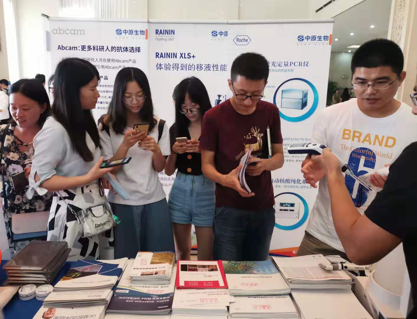 在本屆年會(huì )中,中源公司為參會(huì )的老師和同學(xué)們準備了豐富的產(chǎn)品資料、精美的禮品和部分產(chǎn)品樣機,中源展臺前人群簇擁,爭相參與其中。專(zhuān)業(yè)的銷(xiāo)售人員為老師介紹產(chǎn)品的使用,同學(xué)們不時(shí)地過(guò)來(lái)取閱產(chǎn)品資料,還有很多老師同學(xué)都積極地關(guān)注“中源生物”公眾號,了解更多中源的代理品牌信息。