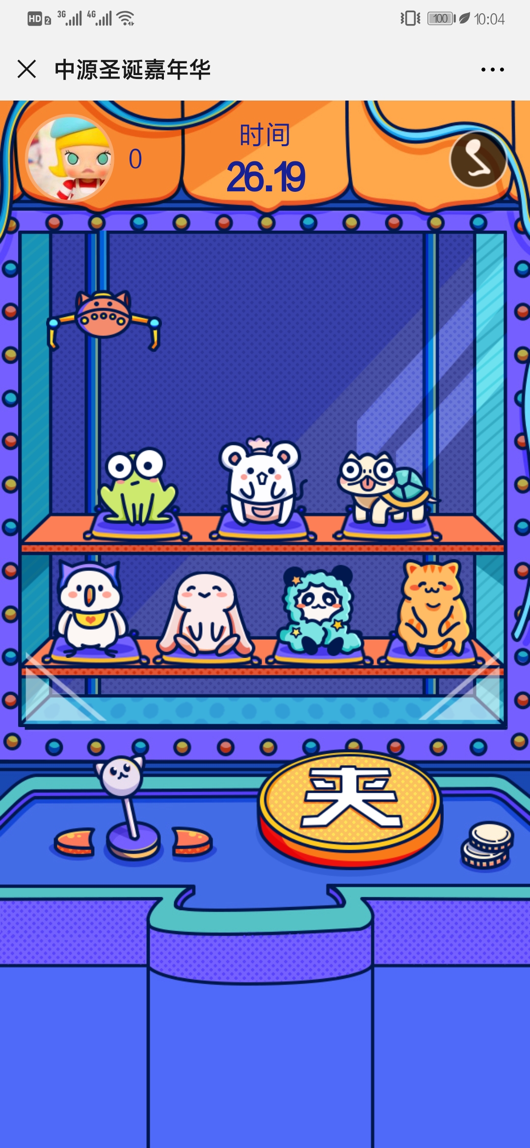 3. 玩“歡樂(lè )娃娃機”游戲,分數達到70分即可抽獎;