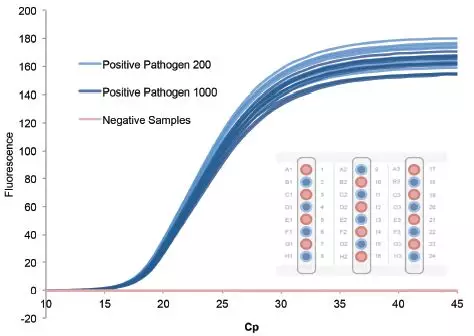 圖5. MagNA Pure 24提取的核酸經(jīng)過(guò)qPCR,Cp 值相對較低,這表明我們的核酸產(chǎn)量較高
