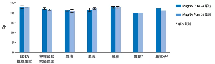 圖8. MagNA Pure 24系統只需一個(gè)試劑盒和一個(gè)實(shí)驗方案即可從不同樣本類(lèi)型中分離核酸,提高病原體檢測效率