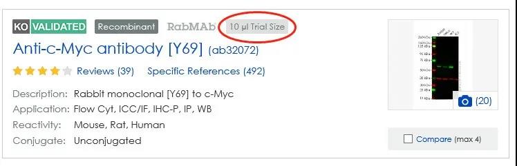 如果您在搜索過(guò)程中看到產(chǎn)品上有以下圖標,則表示Abcam提供 10 µL小瓶裝抗體,用于您的實(shí)驗室檢測。
