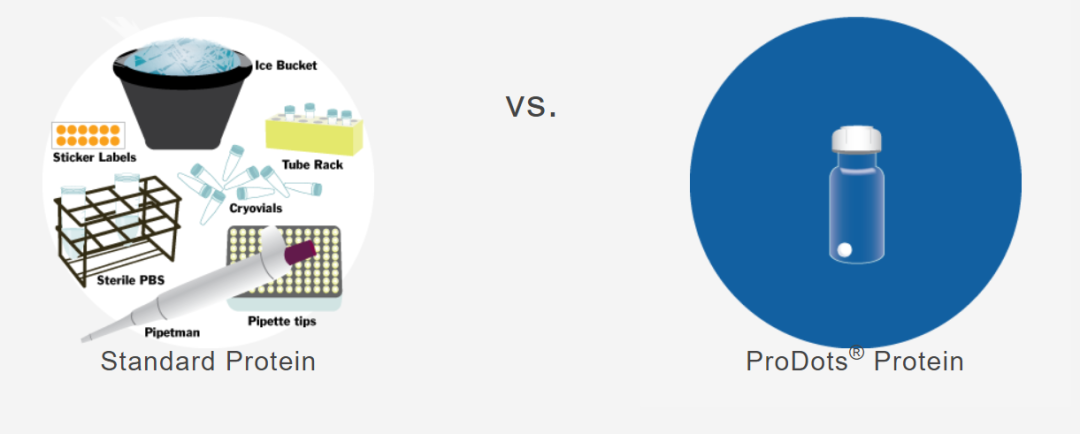 ProDots® 小球是由 Bio-Techne 子品牌 R&D Systems® 研發(fā)的可視化即溶型蛋白,可以直接倒入培養基中,無(wú)需重溶及分裝,避免了反復凍融造成的蛋白損失和繁瑣的實(shí)驗操作。ProDots® 和常規蛋白在生物活性上是沒(méi)有差別的,并且可以確保最佳的蛋白回收率。