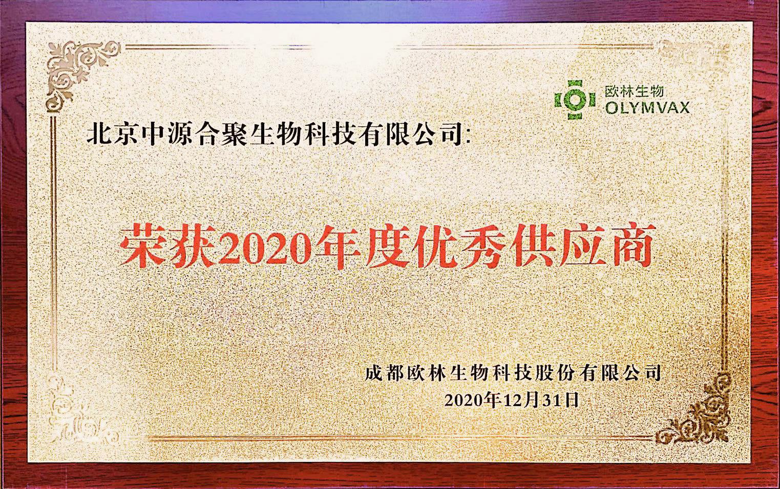 歐林生物“2020 年度優(yōu)秀供應商”稱(chēng)號