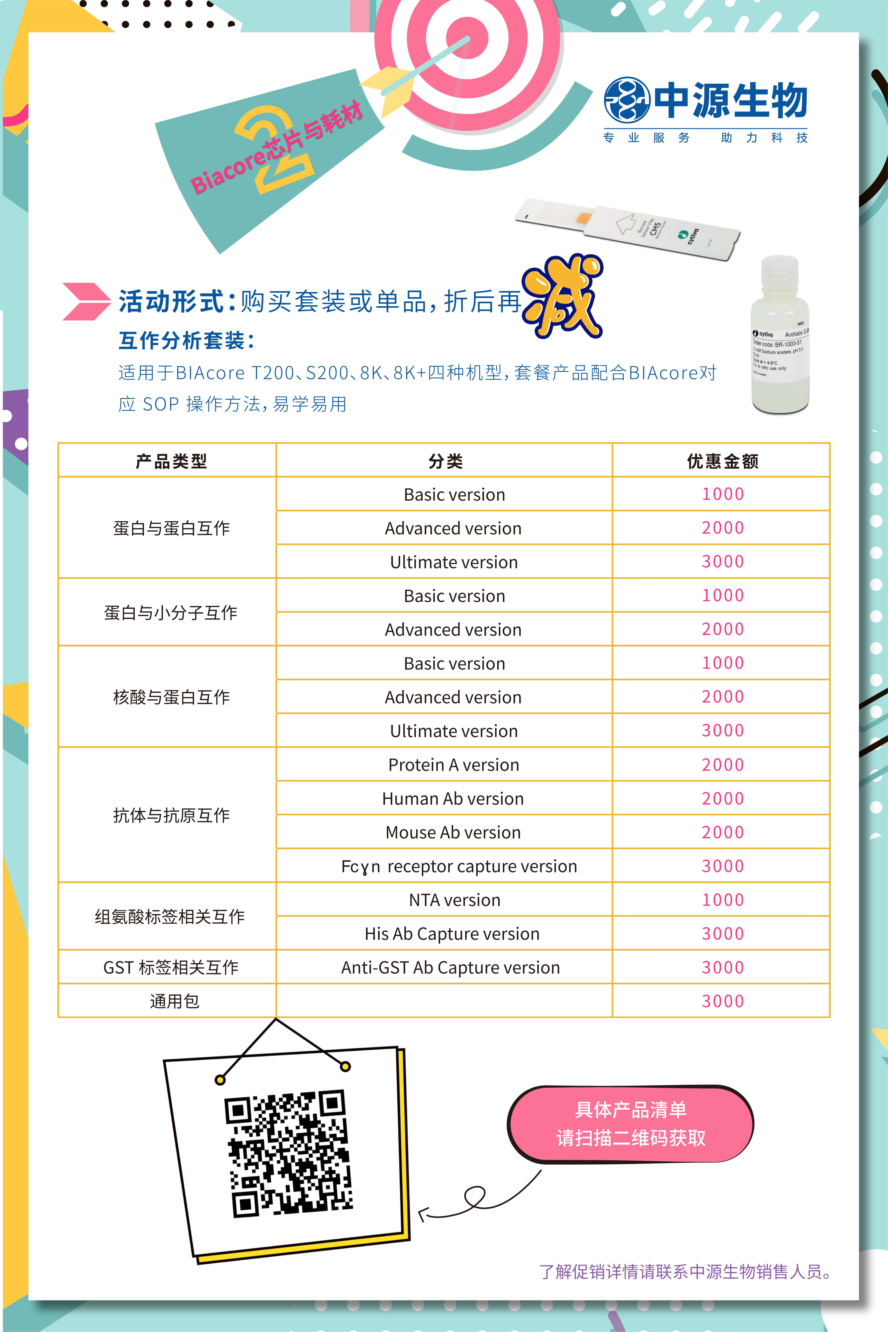 購買(mǎi)Biacore 指定套餐或單品,即可享受價(jià)格優(yōu)惠(套餐產(chǎn)品僅供客戶(hù)參考,客戶(hù)可根據實(shí)際需要靈活選擇,詳情可與相關(guān)銷(xiāo)售人員咨詢(xún)),具體如下: