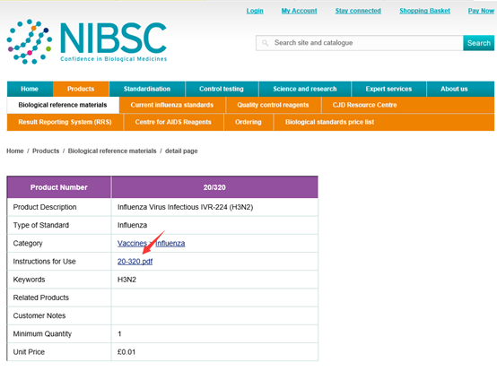 WHO公布流感毒株后登陸NIBSC公布網(wǎng)址,查詢(xún)NIBSC公布的最新毒株貨號。