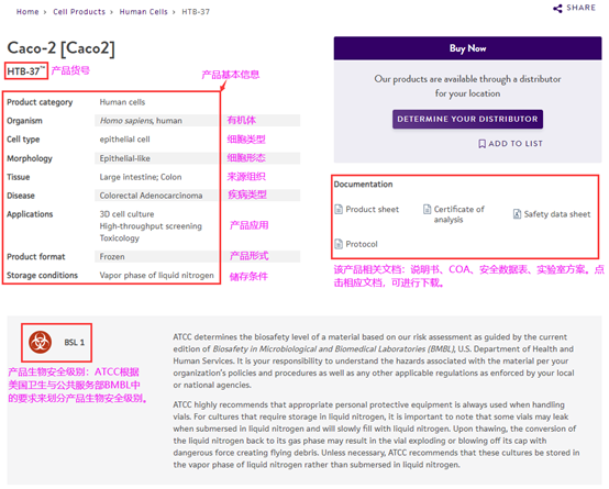 在產(chǎn)品詳情頁(yè)面上,可在頁(yè)面左上角看到產(chǎn)品的基本信息,如產(chǎn)品的名稱(chēng),貨號,及其他基本信息;可在頁(yè)面右上角看到產(chǎn)品說(shuō)明書(shū)、COA、安全數據表、實(shí)驗室方案(如有)等相關(guān)文檔;可在頁(yè)面中看到產(chǎn)品的生物安全級別,即BSL等級。