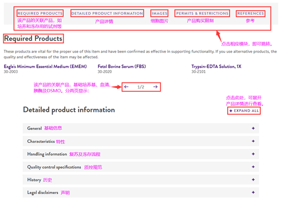 在產(chǎn)品詳情頁(yè)面上,您還可以了解到該產(chǎn)品的關(guān)聯(lián)產(chǎn)品,如:培養和凍存用的基礎試劑等;產(chǎn)品的詳細描述;細胞形態(tài)圖片(如有);產(chǎn)品購買(mǎi)限制;參與文獻等等信息,便于您進(jìn)一步了解產(chǎn)品的情況。
