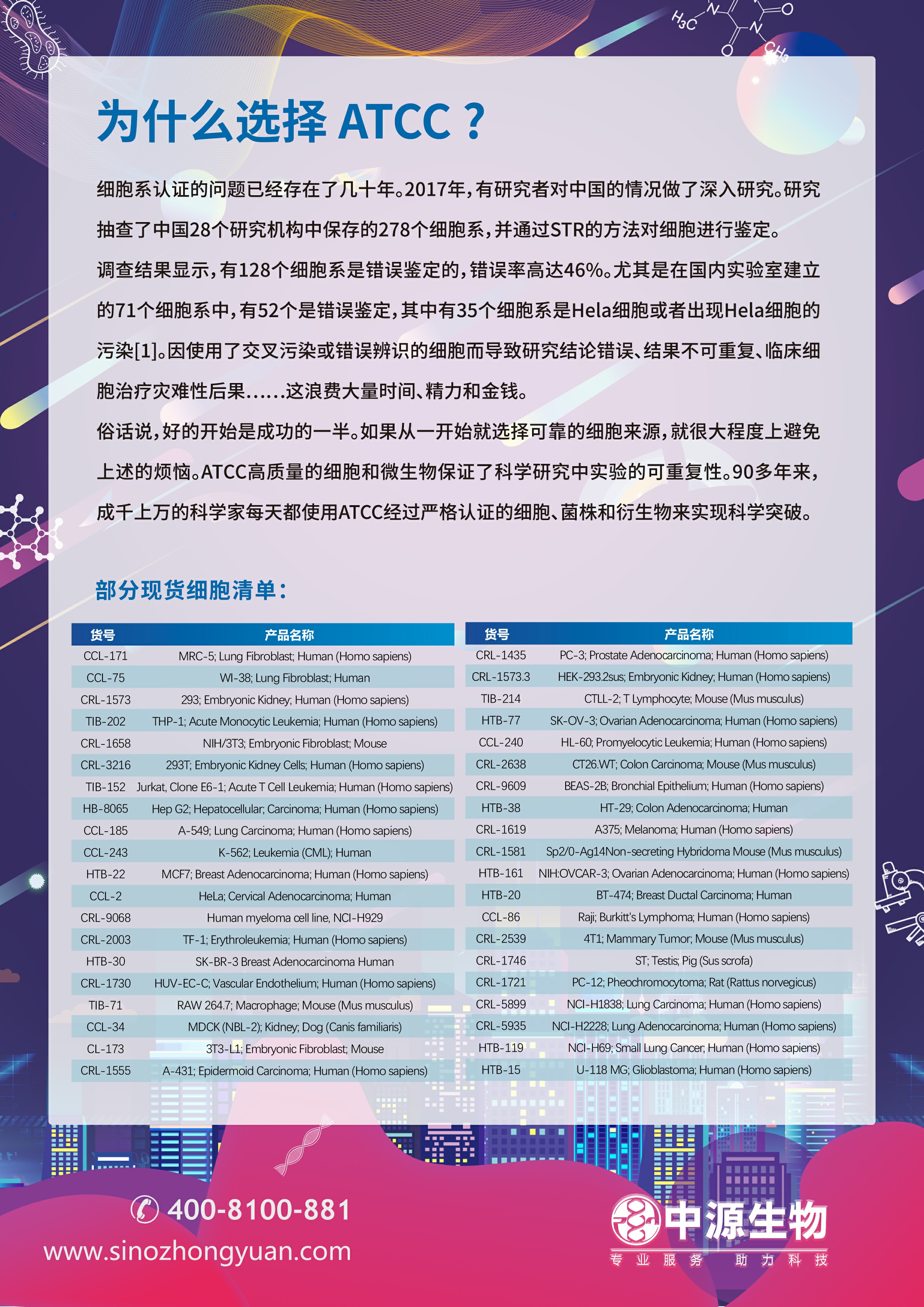 從中源公司購買(mǎi)原裝ATCC細胞類(lèi)產(chǎn)品