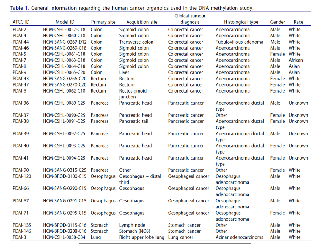The DNA methylation landscape of human cancer organoids available at the American type culture collection,(https://doi.org/10.1080/15592294.2020.1762398),這篇文章提供了25種人類(lèi)癌癥類(lèi)器官的表觀(guān)遺傳指紋特征。已開(kāi)發(fā)的研究表明,這些腫瘤模型對生物醫學(xué)研究界和制藥公司開(kāi)發(fā)抗癌藥物非常有用。