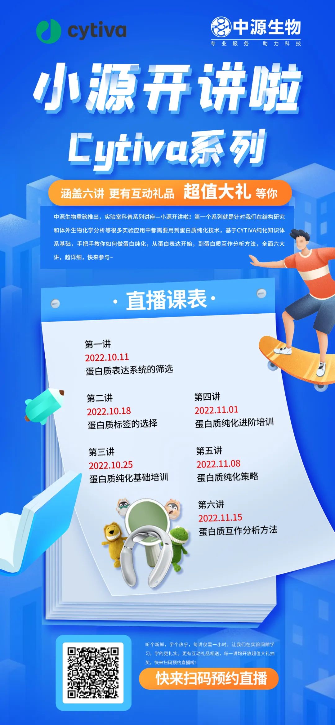 聯(lián)合Cytiva重磅推出蛋白純化系列課程直播講座,全程六講,從最基礎的表達系統篩選,到蛋白純化策略,乃至蛋白質(zhì)分析方法,全方位學(xué)習蛋白質(zhì)研究的方方面面。