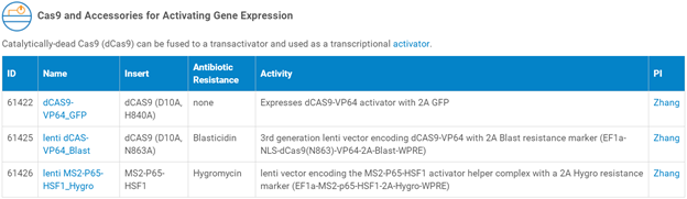 目前Addgene可以提供以下幾個(gè)方面的包裝后慢病毒產(chǎn)品: