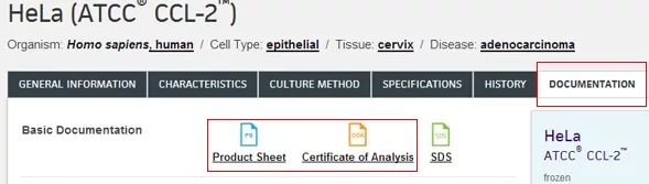 ATCC每個(gè)細胞株都有一份產(chǎn)品說(shuō)明書(shū)(product sheet),其中包含細胞株的信息和詳細的操作指南。此外,ATCC可以提供具體生產(chǎn)批次的檢測報告(COA),其中包含批次的特定信息,如每只凍存管中細胞的數量,微生物污染的檢測結果等。細胞株的所有詳細介紹可以在 ATCC 網(wǎng)站找到,產(chǎn)品說(shuō)明書(shū)和COA可以從ATCC網(wǎng)站下載。