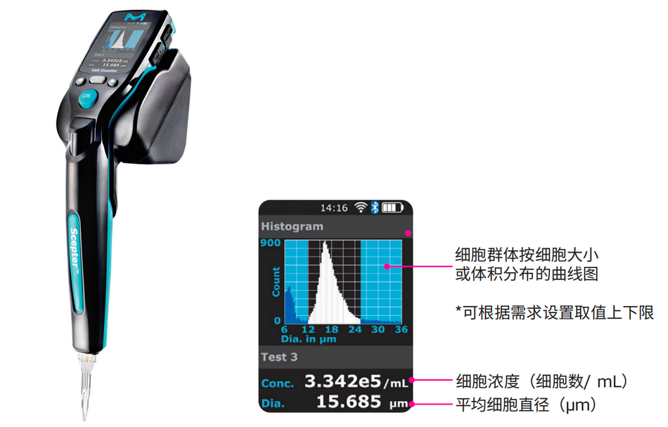 ——Scepter 3.0手持式細胞計數器采用業(yè)界公認的“計數金標準”庫爾特電阻抗原理,避免基于圖像的傳統細胞計數方法常見(jiàn)的失真現象;