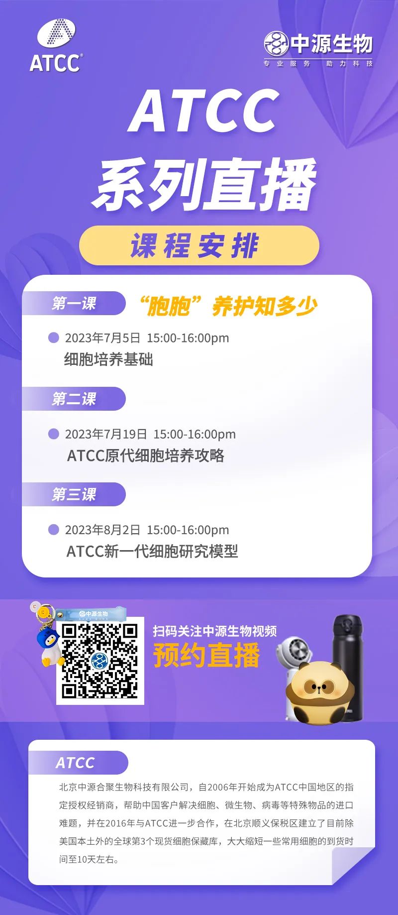 “胞胞”養護知多少——ATCC系列直播預約已開(kāi)放!速來(lái)預約!