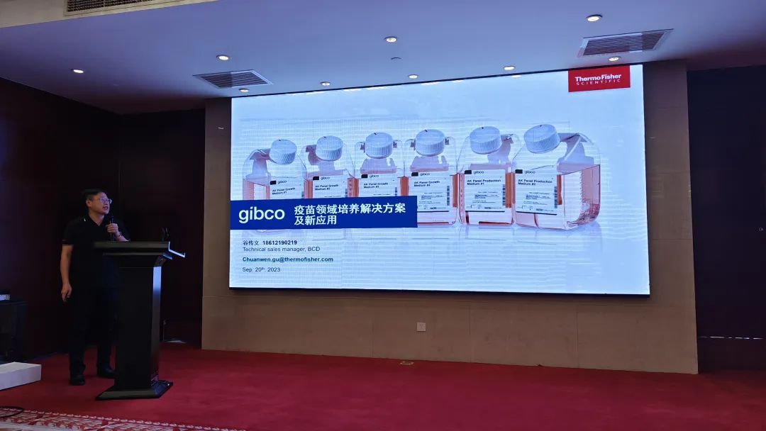 賽默飛產(chǎn)品經(jīng)理谷傳文從Gibco及疫苗工藝簡(jiǎn)介、無(wú)血清產(chǎn)品在病毒疫苗領(lǐng)域的應用、AB蛋白胨產(chǎn)品在菌苗領(lǐng)域中的應用、重組CHO蛋白疫苗中無(wú)血清產(chǎn)品的應用等方面對疫苗領(lǐng)域培養解決方案及新應用進(jìn)行了分享。