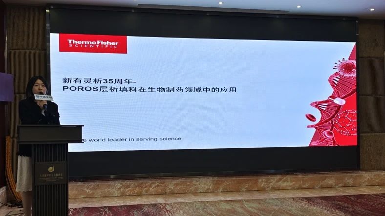 賽默飛生物工藝純化技術(shù)支持經(jīng)理常佳妮以《新有靈析35周年-POROS層析填料在生物制藥領(lǐng)域中的應用》為題,講解了POROS填料產(chǎn)地、生產(chǎn)工藝流程、技術(shù)優(yōu)勢等內容。