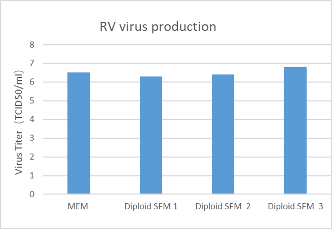 目前我們已經(jīng)證實(shí)了二倍體培養基成功用于水痘、水皰性口炎病毒,麻腮風(fēng),腸道病毒和甲肝等,并且效價(jià)不低于傳統的培養基 ,在某些案例上要高于傳統培養基1個(gè)Log值。