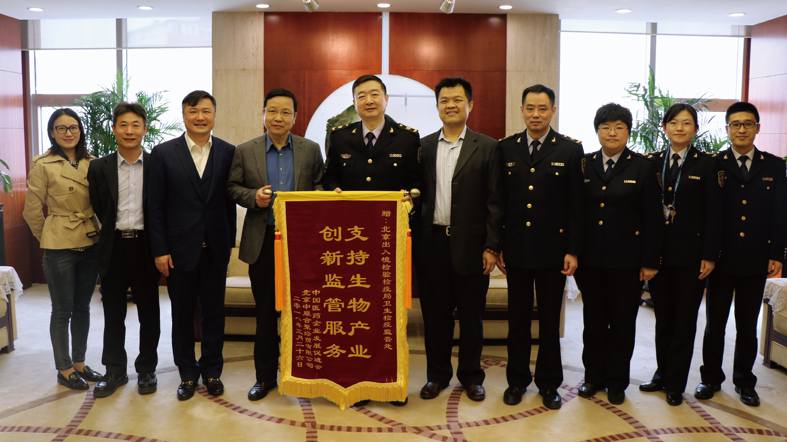 On March 28, 2018, Yao Tongli, Vice President of China Pharmaceutical Enterprise Development Promotion Association, and Zhu Xiaoyong, President of Zhongyuan Company, and Li Zhigang, Vice President, presented the banner to the Health Supervision Office of Beijing Entry-Exit Inspection and Quarantine Bureau.18-04-02