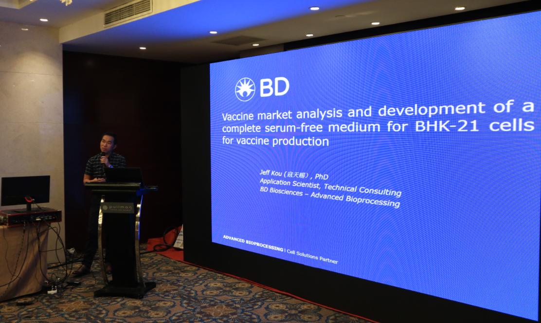 Mr. Yan Tianci, senior engineer of BD's senior biotechnology department, gave a keynote speech on "vaccine market analysis and BHK serum-free medium development"