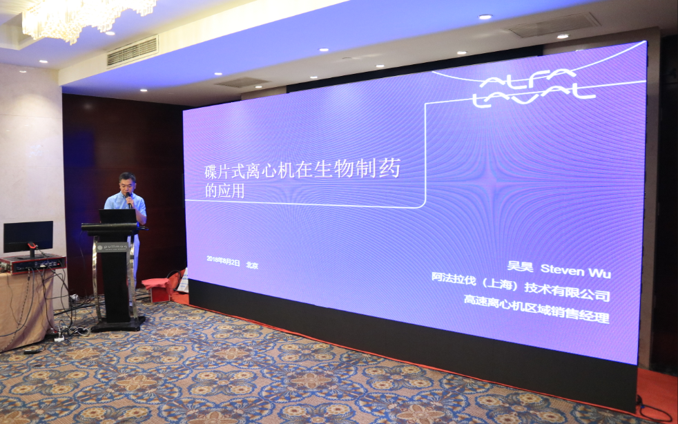 Wu Hao, Regional Sales Manager of Alfa Laval, gave a keynote speech on "The Application of Butterfly Centrifuge in Biopharmaceuticals"