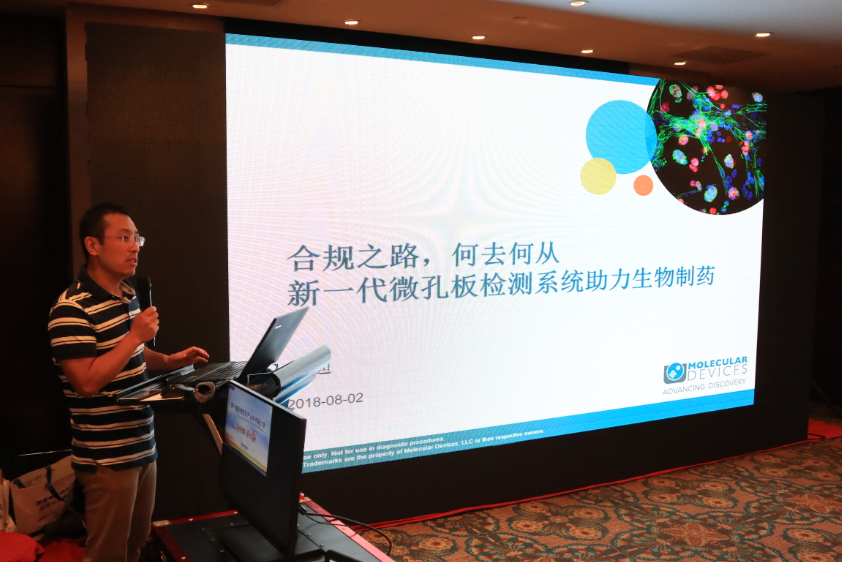Yin Di, MD product line manager of MD company, gave a keynote speech on "The road to compliance, where to go - a new generation of microplate detection system to help biopharmaceuticals"